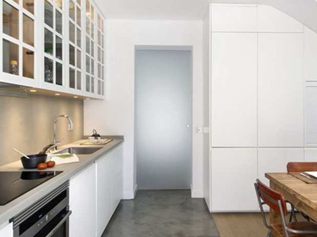 En esta cocina volvemos a utilizar el recurso de ocultar la campana en las vitrinas.