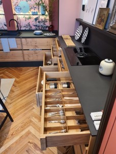 En esta ocasión creamos el modelo ZURA, a partir de maderas recuperadas de edificios de Navarra. Nos encanta que esas maderas rehusadas sean ahora al alma de nuestra cocina, que para dosde constituye el corazón de la casa.
