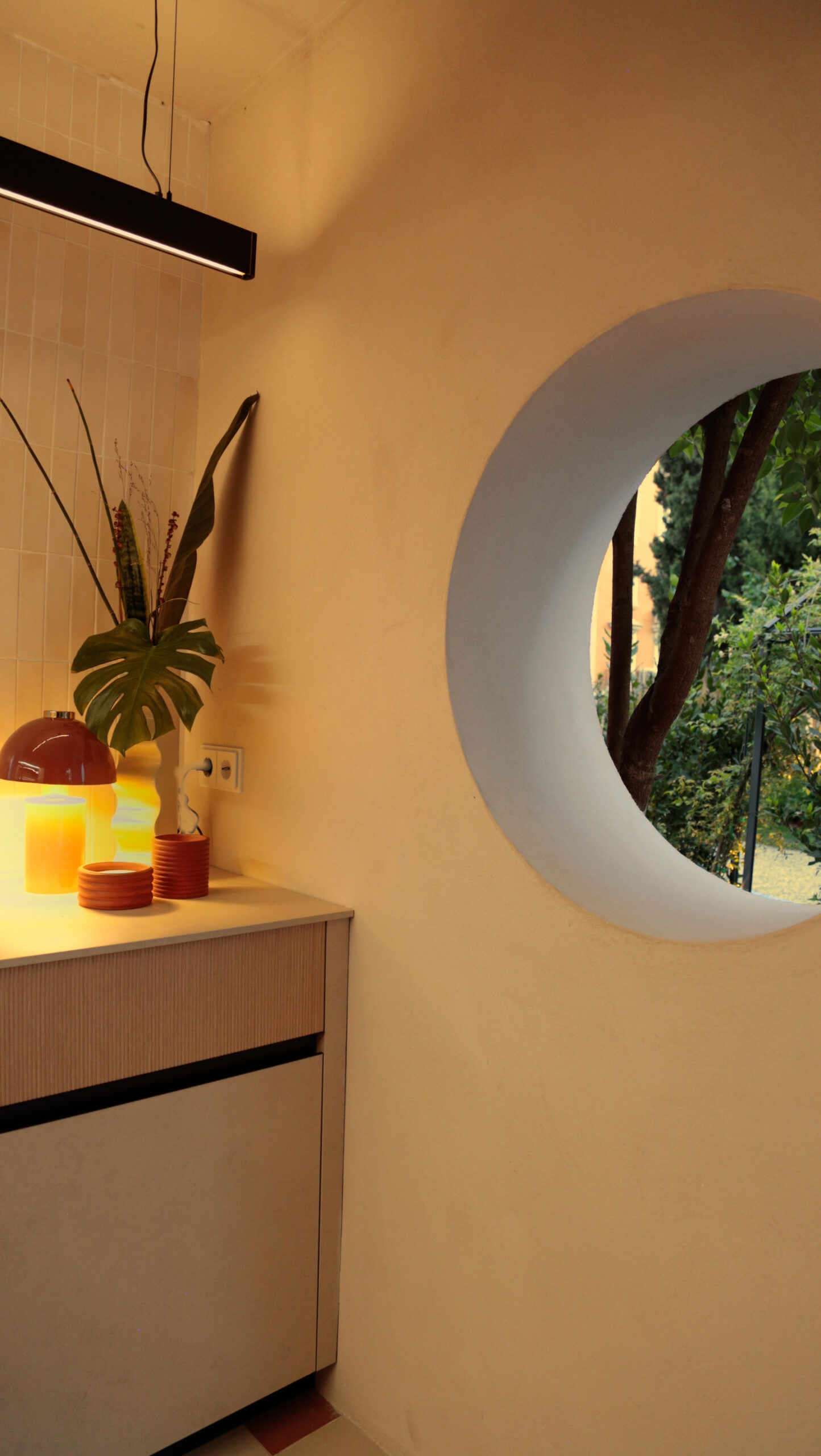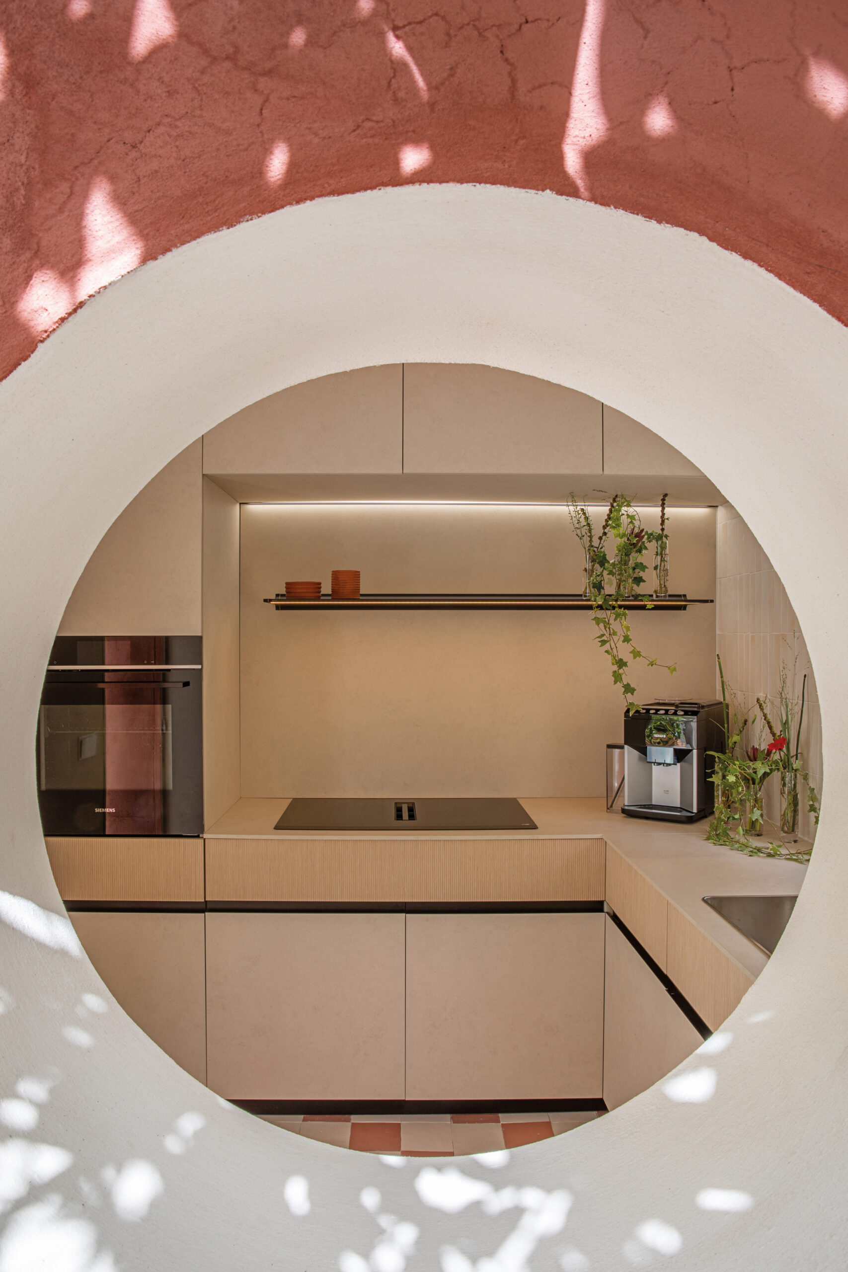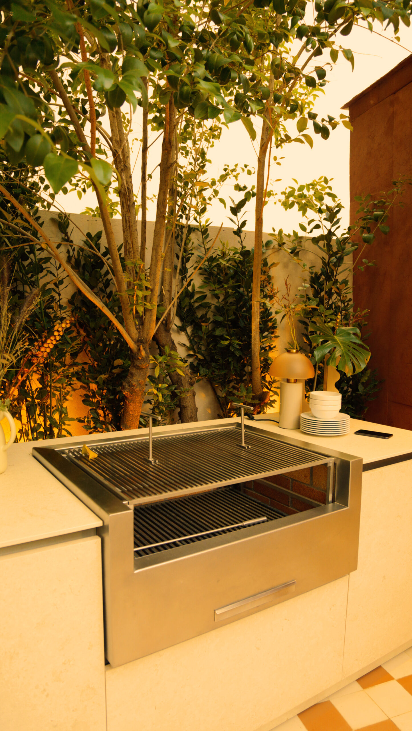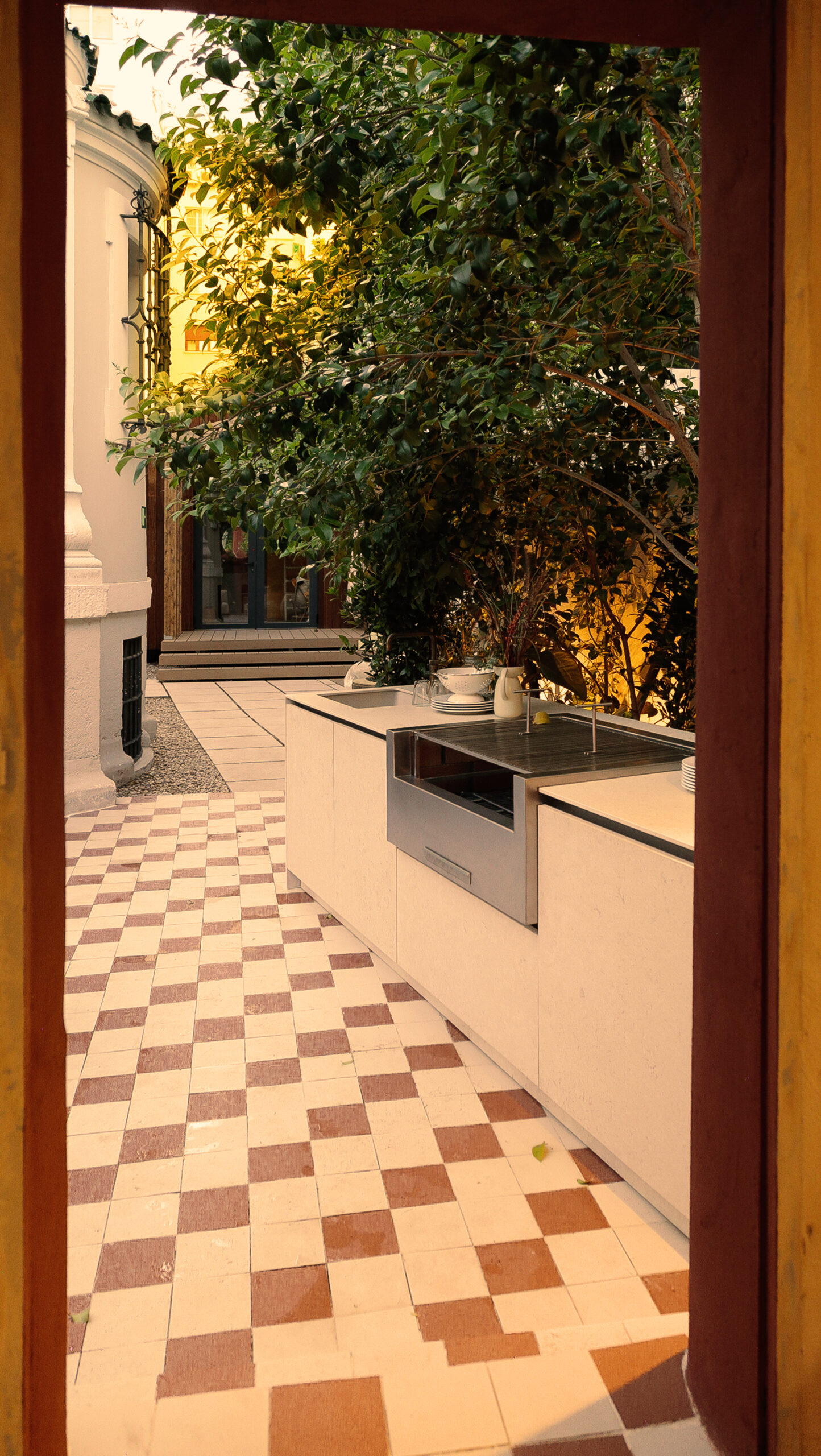 En esta ocasión, con el concepto de cocina “In/Out Kitchen” os  presento un portal entre dos mundos: el interior de tu hogar y el exterior. En el corazón de esta cocina, encontramos una isla que parece fundirse con la naturaleza que la rodea. Las encimeras se extienden hacia afuera, fusionándose con una barra al aire libre, donde puedes preparar deliciosas comidas mientras disfrutas del sol y el aire fresco.