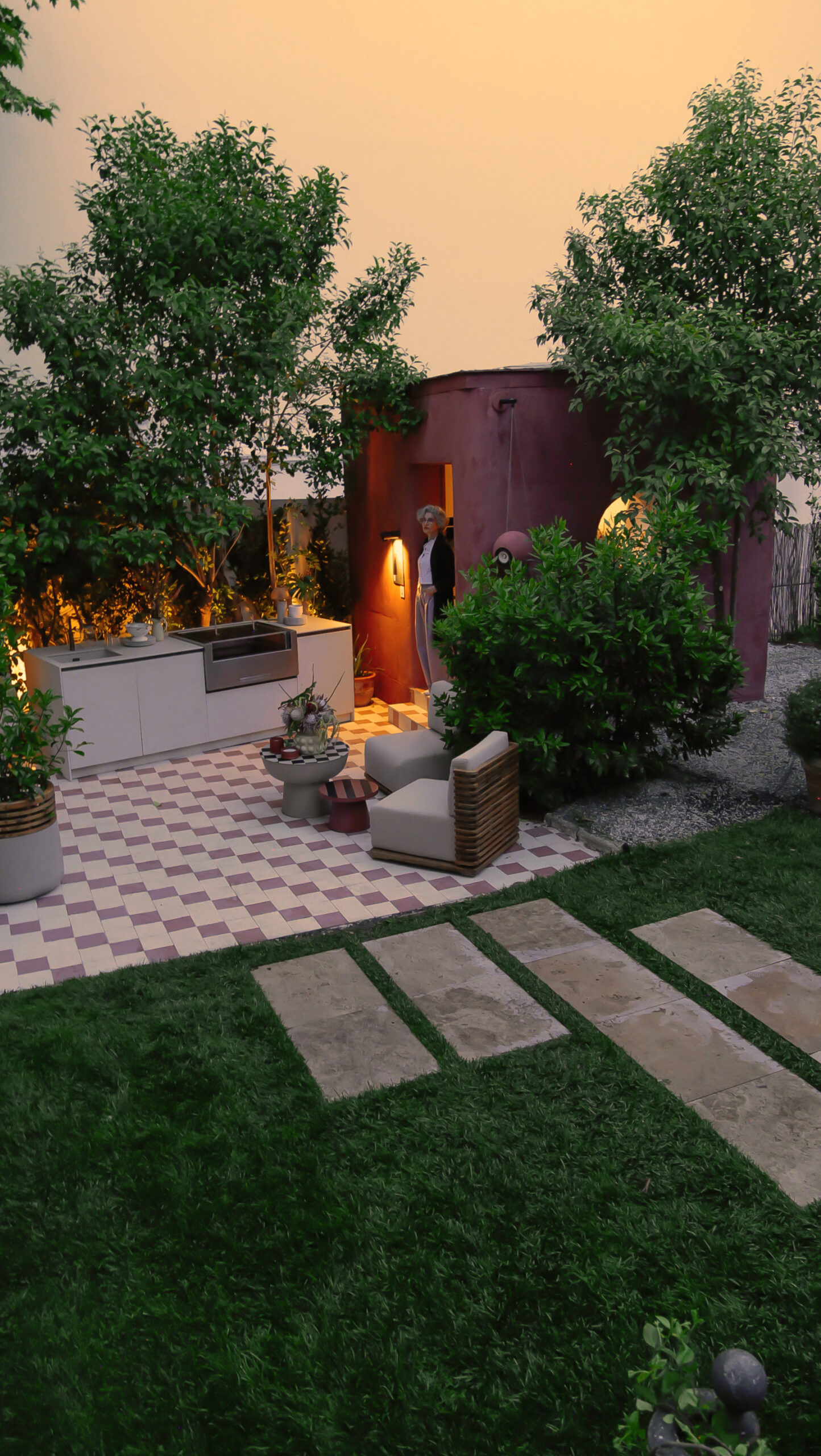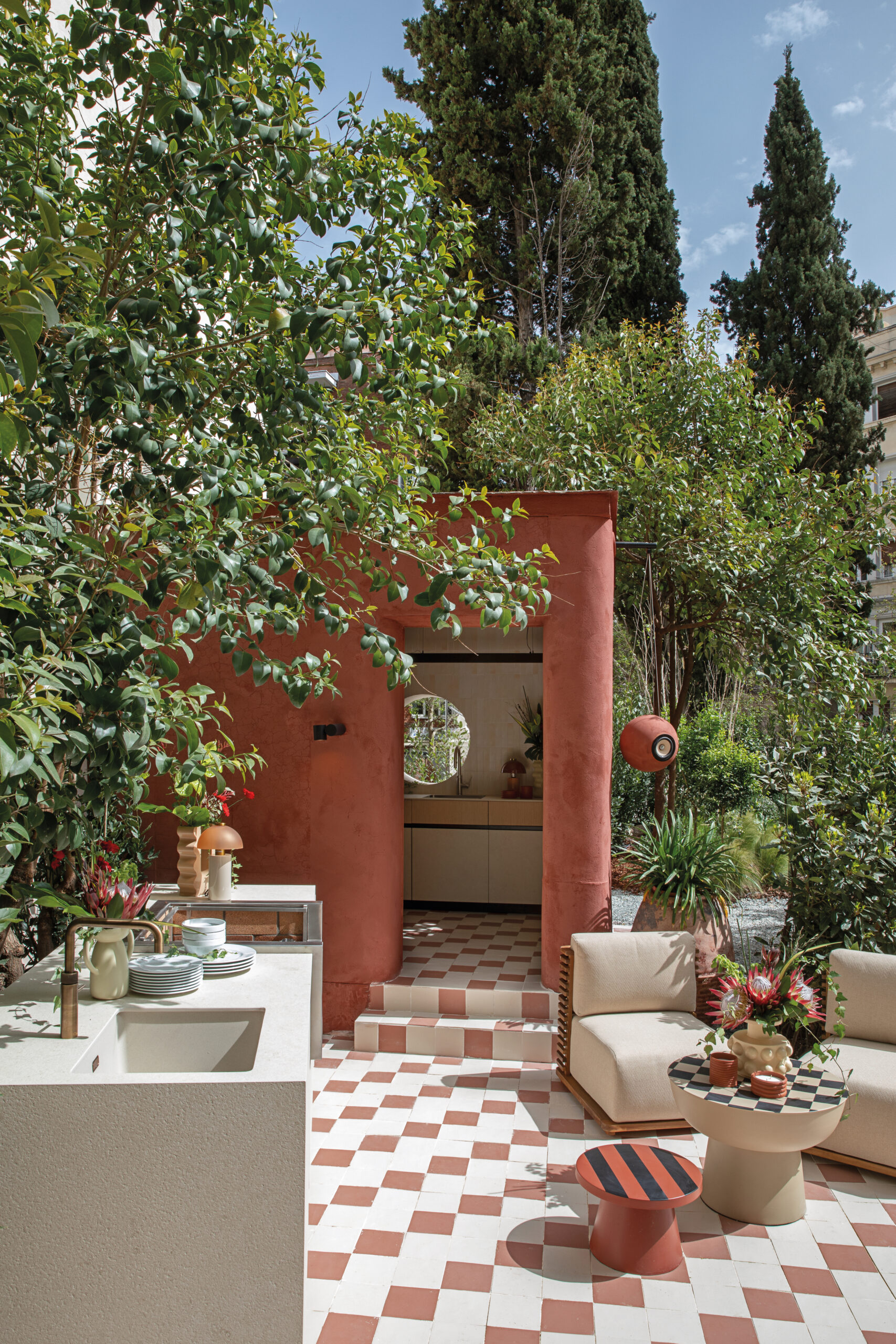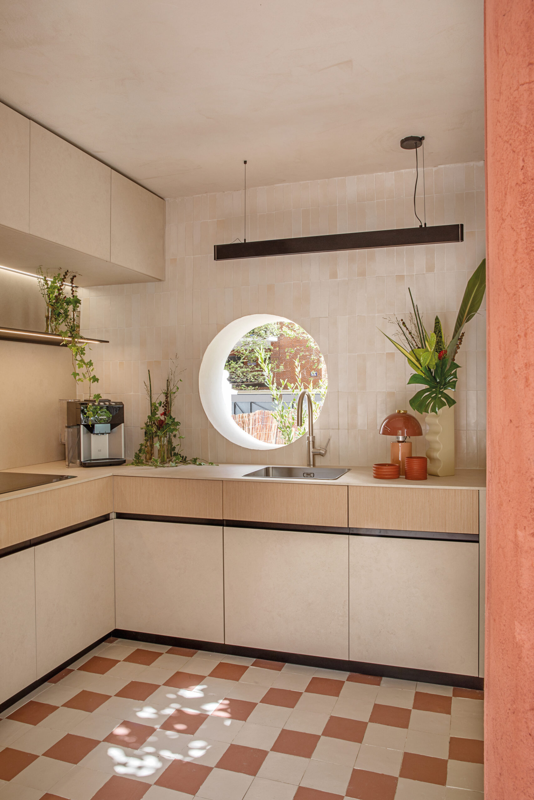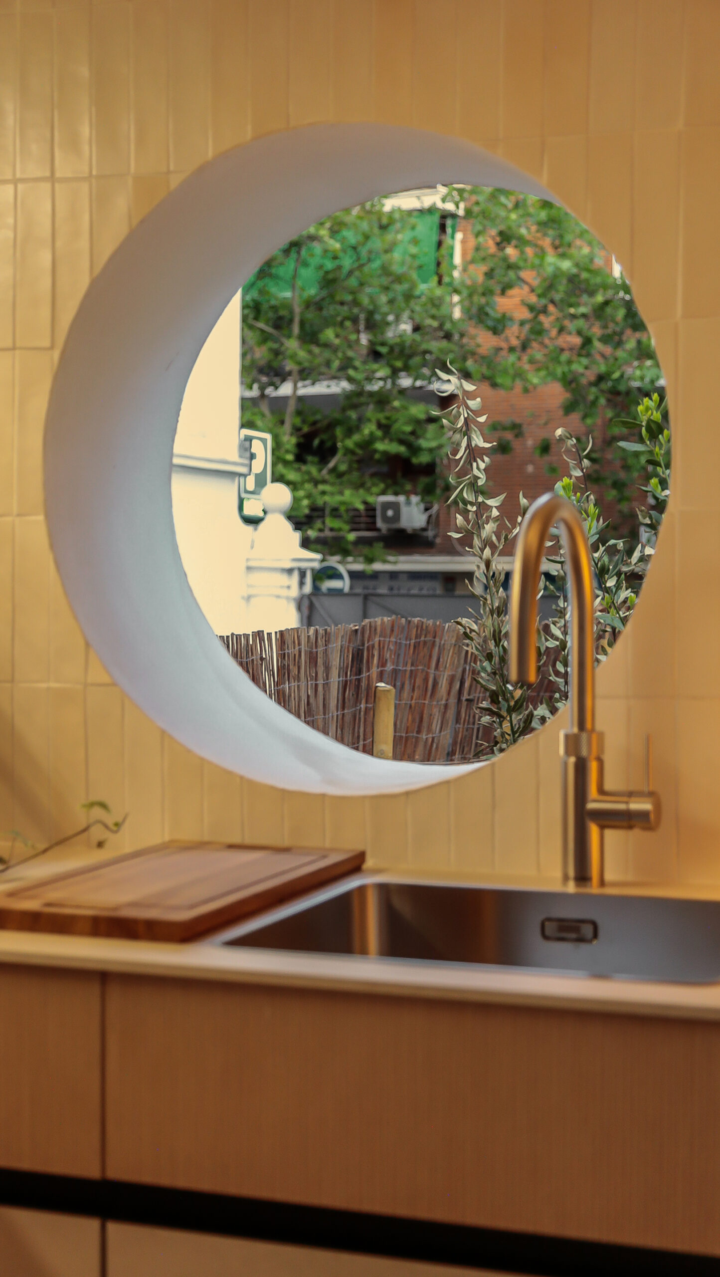 En esta ocasión, con el concepto de cocina “In/Out Kitchen” os  presento un portal entre dos mundos: el interior de tu hogar y el exterior. En el corazón de esta cocina, encontramos una isla que parece fundirse con la naturaleza que la rodea. Las encimeras se extienden hacia afuera, fusionándose con una barra al aire libre, donde puedes preparar deliciosas comidas mientras disfrutas del sol y el aire fresco.