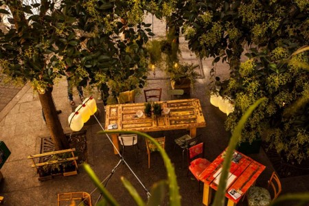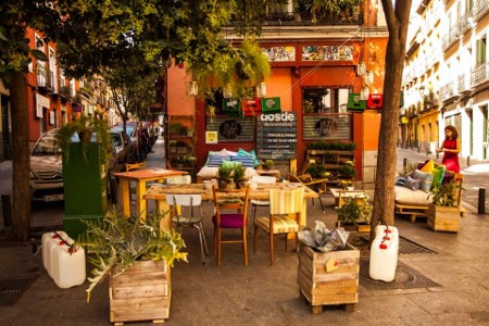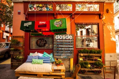 En esta ocasión nos unimos a la fiesta participando con una instalación en el Jazz Bar. Nuestro trabajo consistió en montar una terraza con mobiliario hecho con puertas de derribo, lámparas suspendidas hechas con botes para conservas, cajas para bebidas y bidones de gasolina…. Demostrando que con poco presupuesto se pueden hacer muchas cosas.
