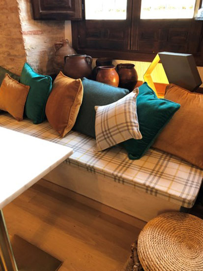 En este hotel boutique situado en la provincia de Guadalajara quisimos crear ambientes naturales con mucha luminosidad en la que los materiales de “la tierra” inundaran todos los rincones.